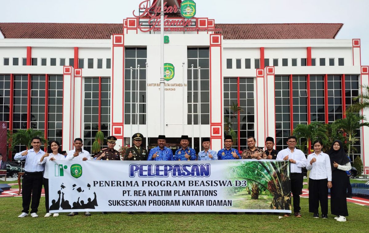 PT REA Kaltim Plantations scholarships and apprentice were handed over by the Regent of Kutai Kartanegera Regency, Edi Damansyah, to Devi Fatma Sari, Dilla Sapira, Sisilia Yuni Tangkin, Muwahidin, Claudio Lopez, Edwardus Aristo Adur, 6 local students from Kembang Janggut District, and accompanied by Dedy Raisandy, HR Senior Manager representing the Management of PT REA Kaltim Plantations.